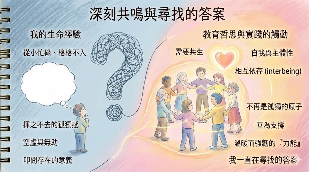 而教育作為培育社會公民的機構,不應只是製造標準零件的工廠,而應是那片能讓我們既活出自己主體性、又能與他人深刻共生的肥沃土壤。