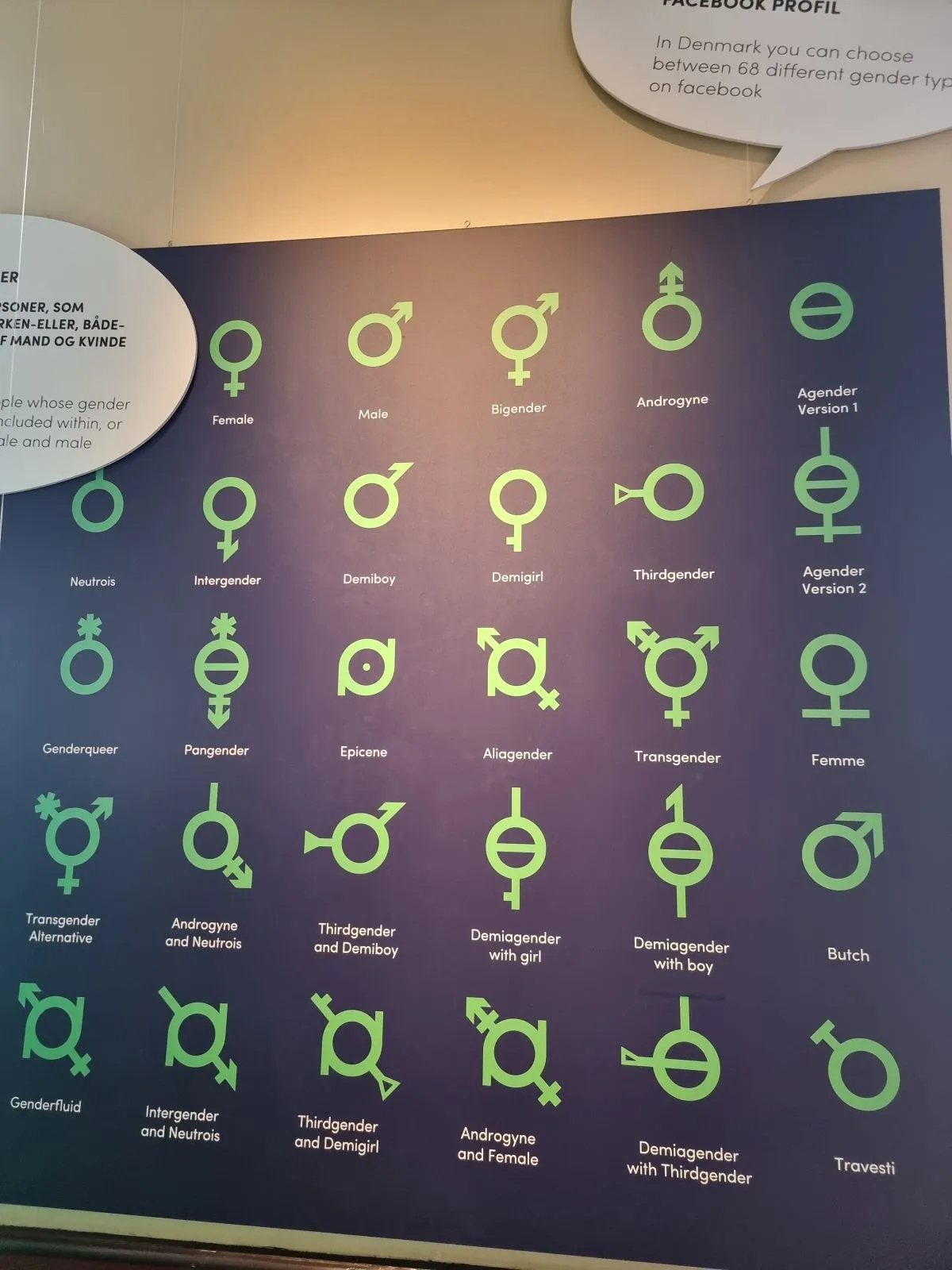 如果我們將鏡頭拉遠,會發現這個圓輪上的刻度,比我們想像的還要複雜。書中提到作者造訪丹麥性別博物館(Gender Museum Denmark)的經歷,這段見聞為特權輪增添了更深邃的註腳。在那裡,關於性別的定義與分類竟然多達 30 種以上。