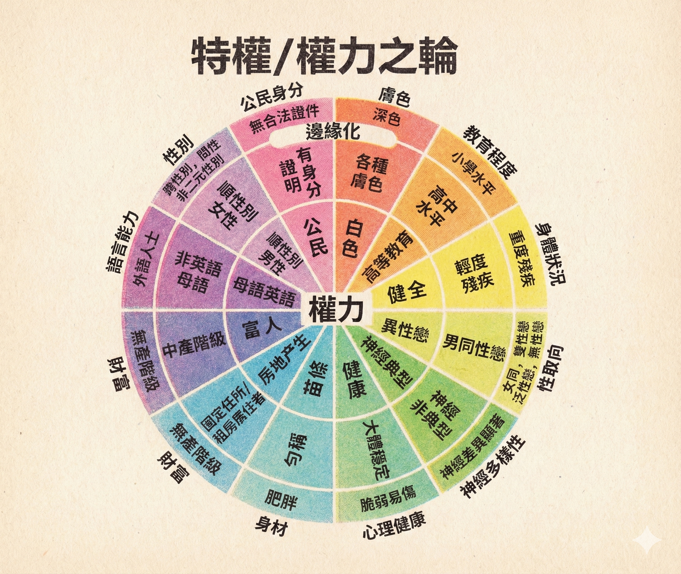 書中引用了加拿大教育學者 Silvia Duckworth 的「特權之輪」(Wheel of Power/Privilege)作為起點: