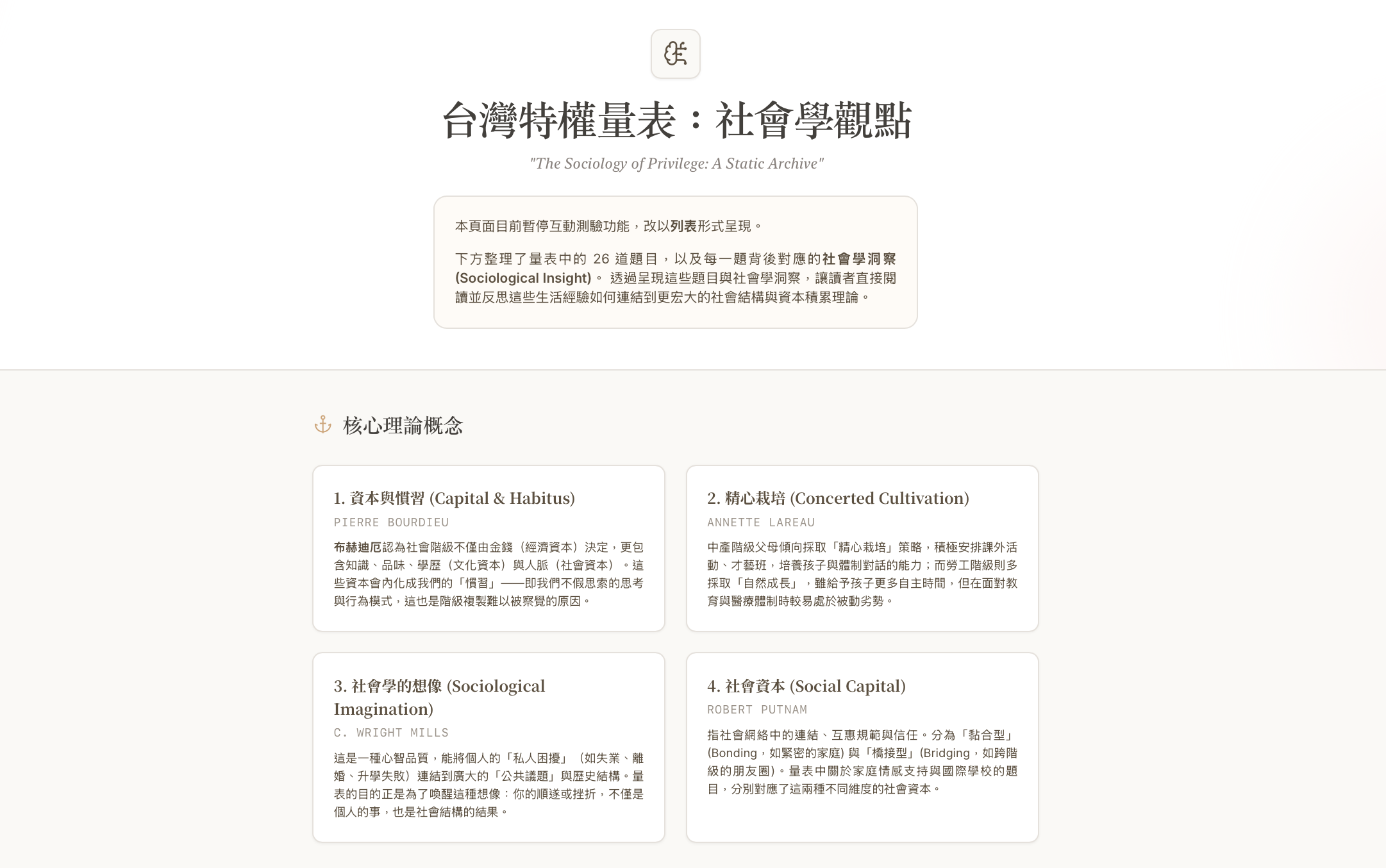 這種轉譯非常重要,它提醒我們:特權是脈絡化的(Contextual)。 我們不能只用西方的視角看世界,必須回到自己腳下的土地,去辨識那些在我們社會中被視為「理所當然」的優勢結構。