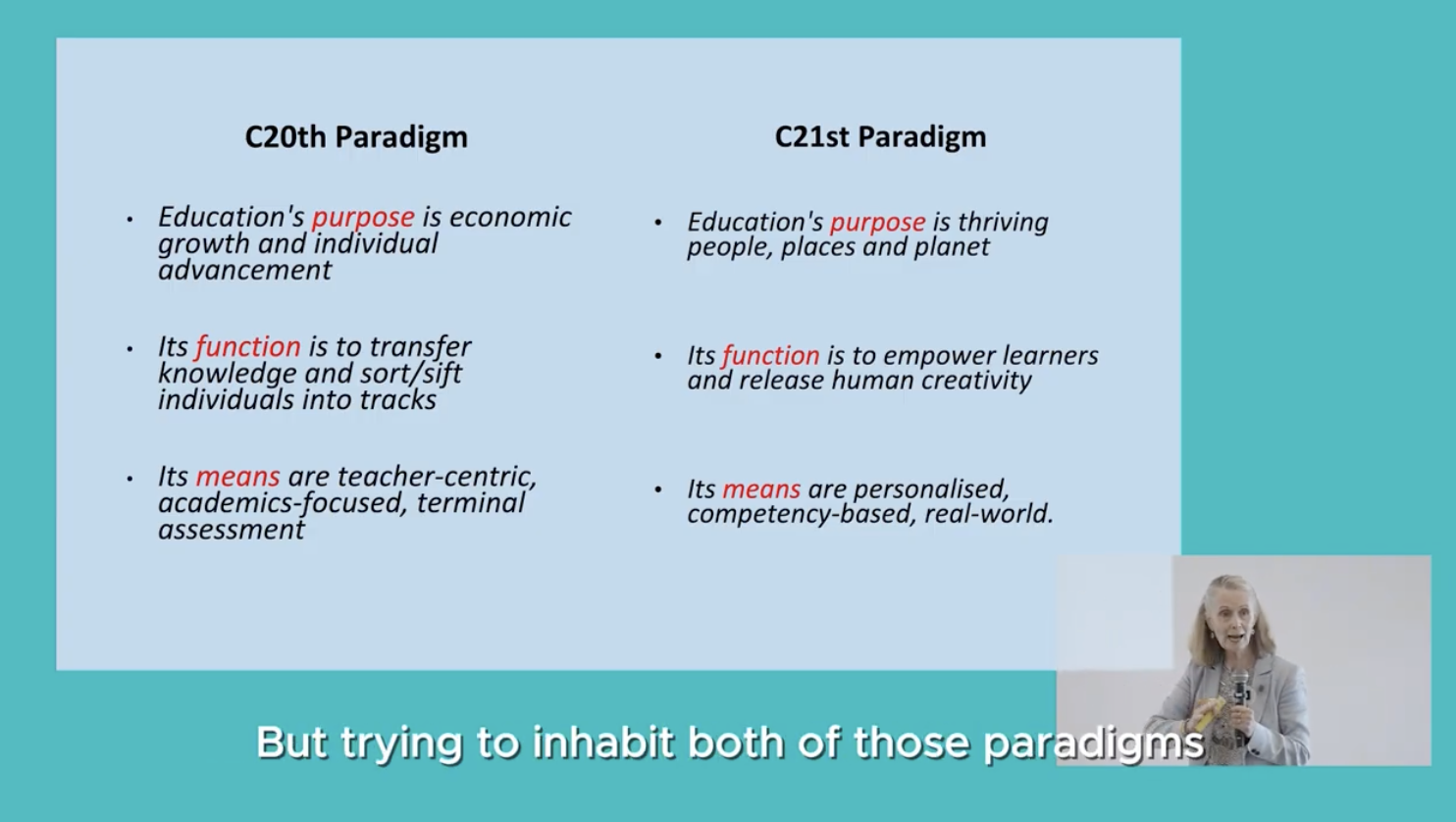 OECD(經濟合作暨發展組織)高級教育顧問、全球教育創新思想家 Valerie Hannon 在其著作《Thrive: The Purpose of Schools in a Changing World》(繁榮:變動世界中的學校目的)及近期的演講中明確指出,全球教育正面臨典範轉移。她警告,我們現有的教育系統是為了「20世紀的工廠」設計的,其特徵是「教師中心、標準化考核、篩選與分類」。