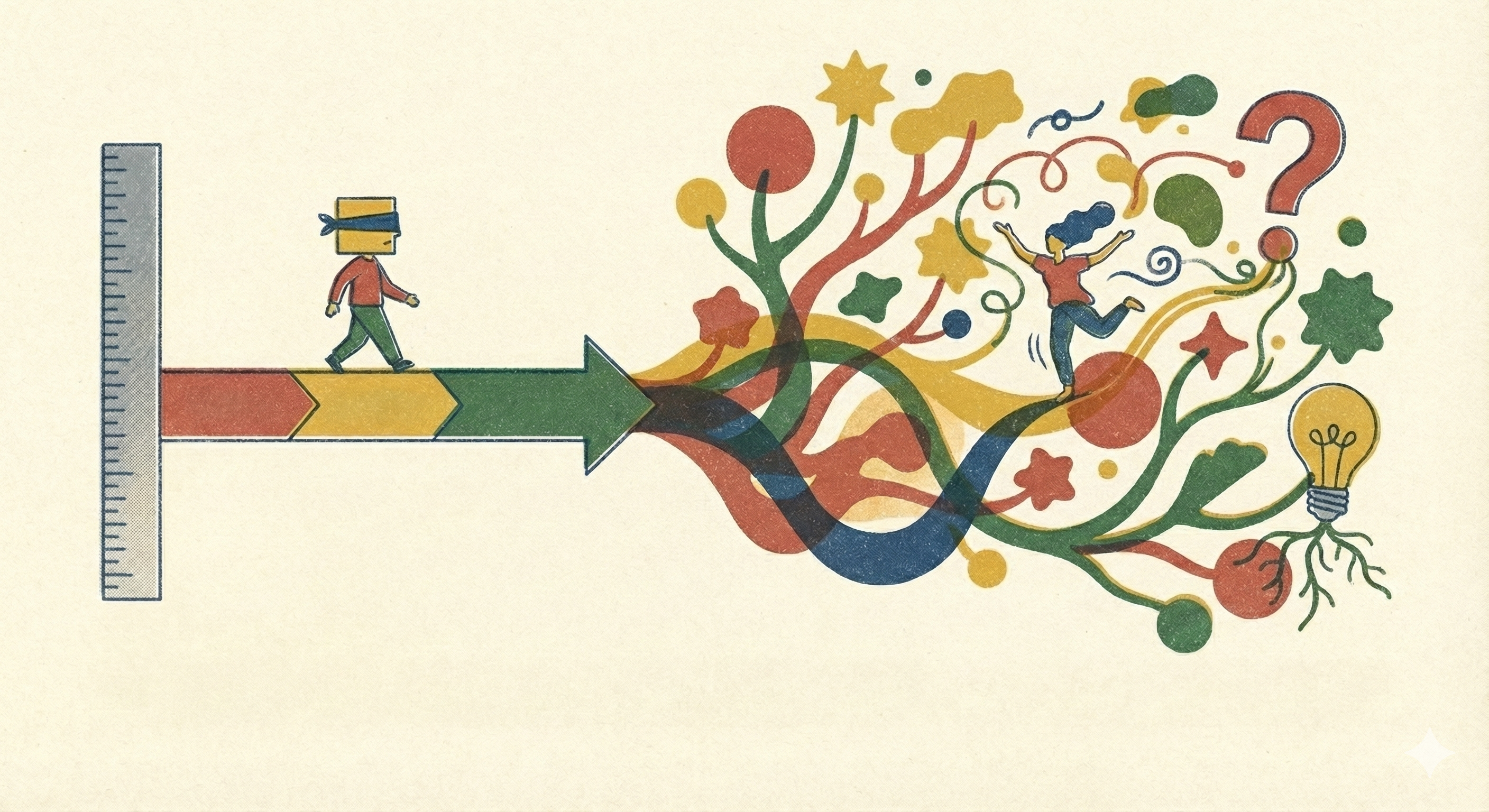 批評者以「想到哪做到哪」來形容人文的課程,並指責其「看不到全貌」。這種焦慮源自於對傳統「預鑄式課程」(Pre-planned Curriculum)的依賴,誤以為只有寫在紙上的線性進度表才叫教學。然而,用這種「工業時代」的舊思維來看待「學習科學」驗證的歷程,本身就是一種專業知識的滯後。