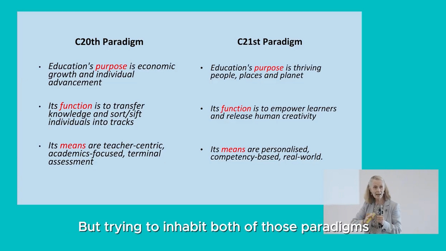 OECD(經濟合作暨發展組織)高級教育顧問、全球教育創新思想家 Valerie Hannon 在其著作《Thrive: The Purpose of Schools in a Changing World》(繁榮:變動世界中的學校目的)及近期的演講中明確指出,全球教育正面臨典範轉移。她警告,我們現有的教育系統是為了「20世紀的工廠」設計的,其特徵是「教師中心、標準化考核、篩選與分類」。